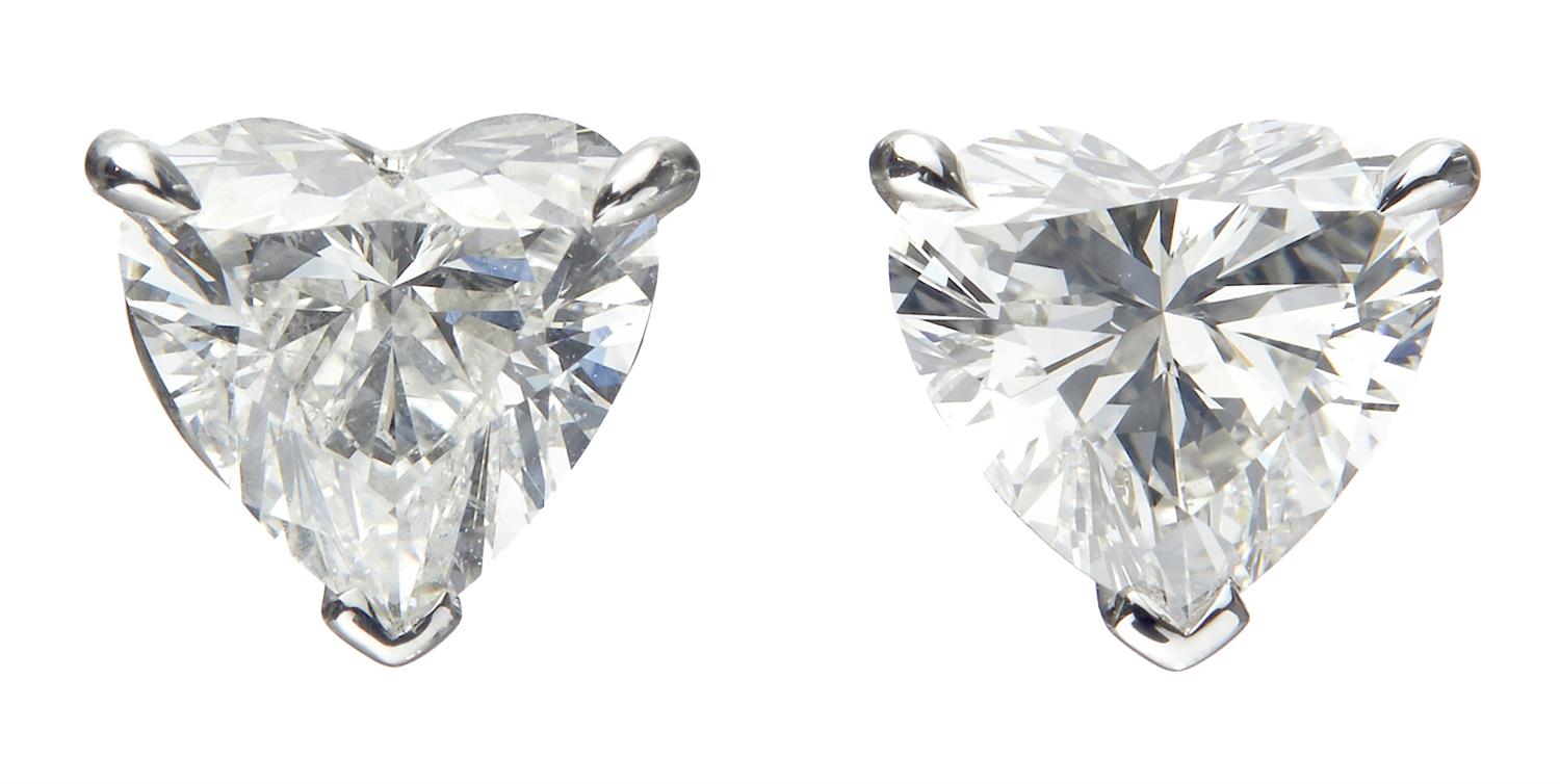 The heart brilliant-cut diamonds each weighing 1.01 carats are claw-set, post fittings.