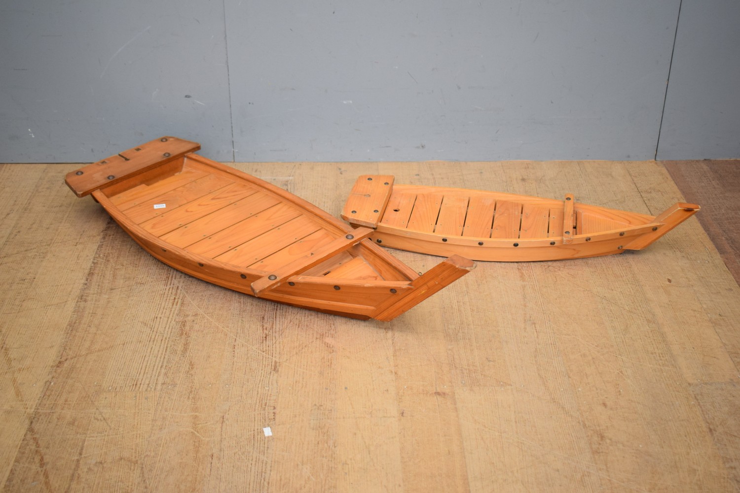 TWO JAPANESE SUSHI BOATS (LARGEST 43H X 107W X 38D CM)