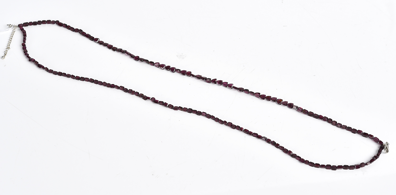 A DOUBLE STRAND OF GARNET BEAD NECKLACE, TOTAL LENGTH 400MM