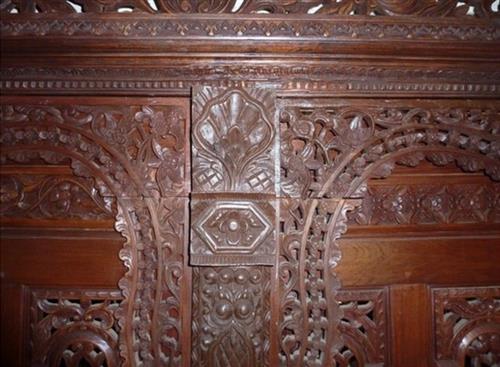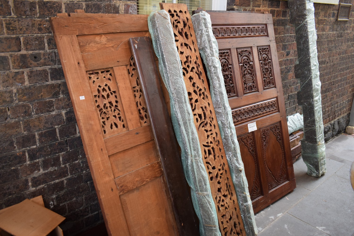 A LARGE CARVED TIMBER STRUCTURE IN PIECES (A/F) (MANY LARGE AND VARYING PIECES, LARGEST APPROX 400 CM LONG) (PLEASE NOTE THIS HEAVY ITEM MUST BE REMOVED BY CLIENTS OR CARRIERS AT THE CUSTOMERS EXPENSE. LEONARD JOEL STAFF CANNOT ASSIST CARRYING THIS ITEM)