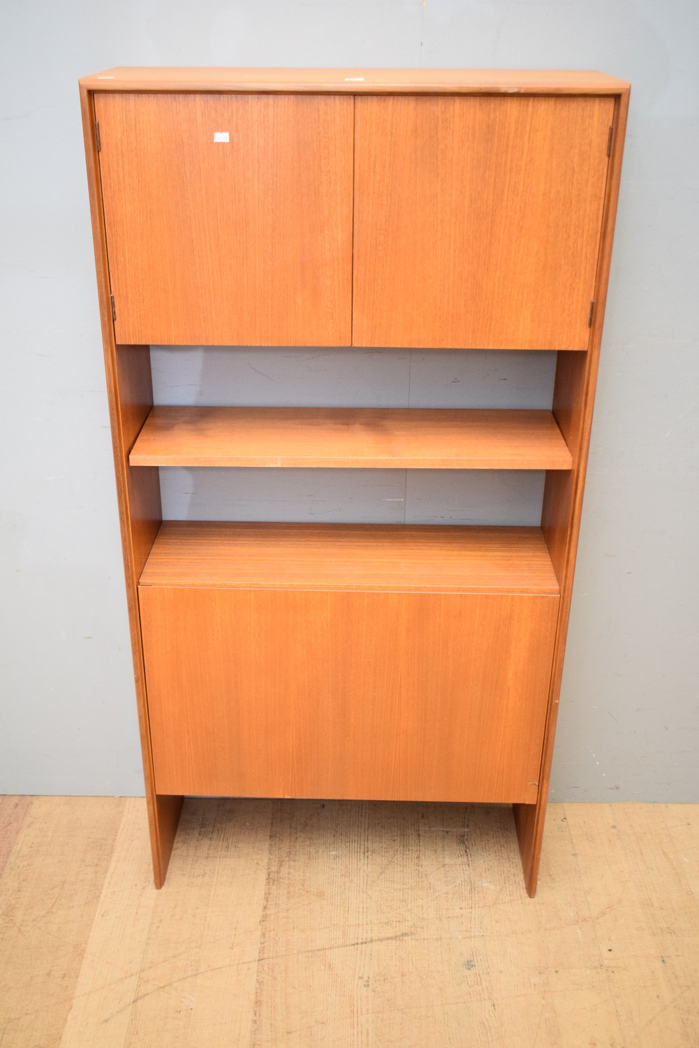 A G-PLAN MID-CENTURY TEAK BOOKCASE/DRINKS CABINET (A/F, REPAIR TO DOOR, DAMAGE TO VENEER) (150H X 76W X 27D CM) (LARGE ITEM)