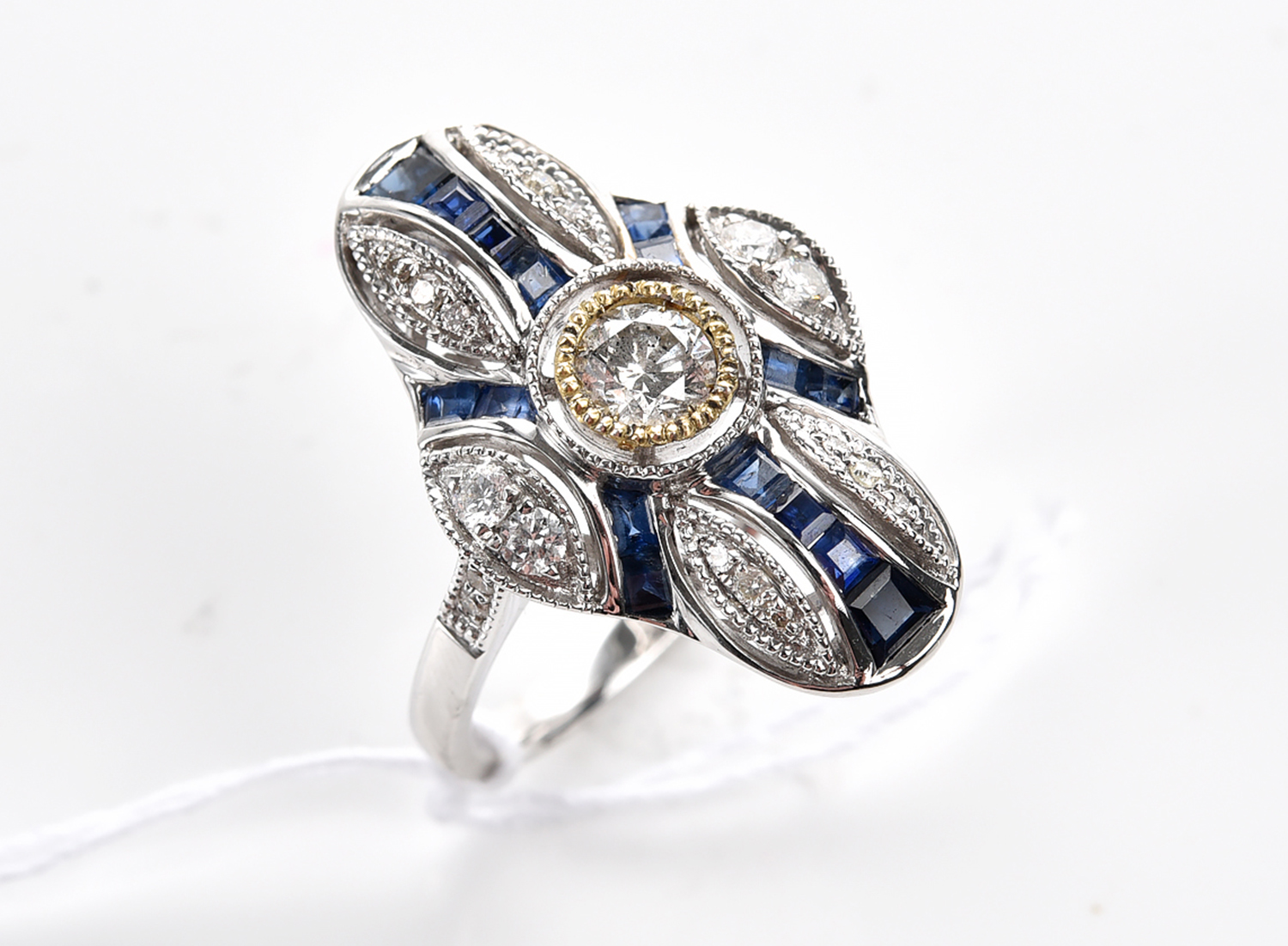 Sapphires totalling 0.92cts and diamonds totalling 0.62ct.