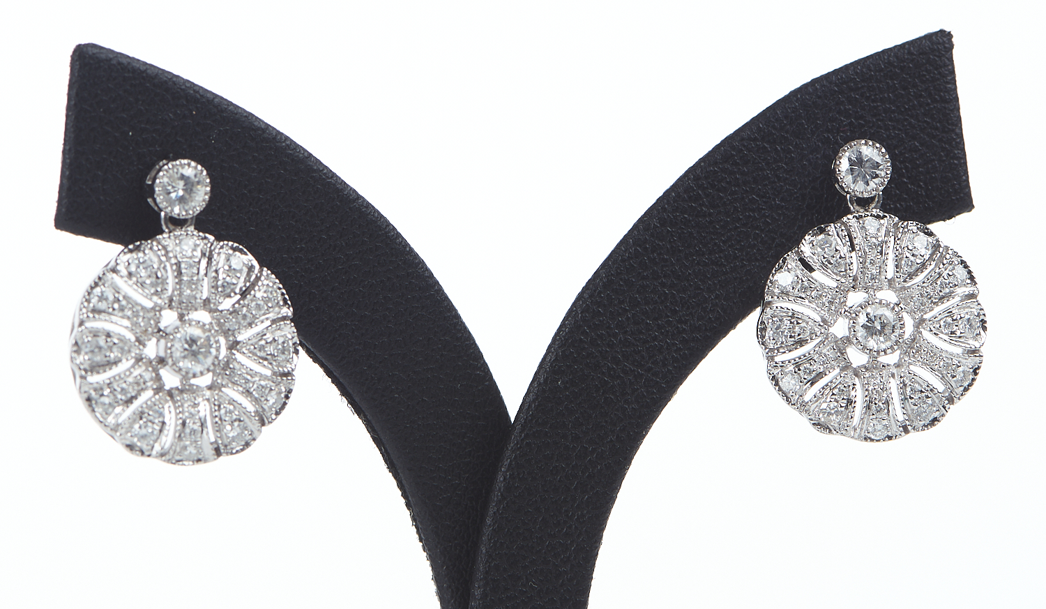 A PAIR OF DIAMOND EARRINGS IN 18CT WHITE GOLD, OF CIRCULAR DESIGN, THE DIAMONDS TOTALLING 0.82CT, TO POST AND BUTTERFLY FITTINGS, DIAMETER 15MM, 5.5GMS