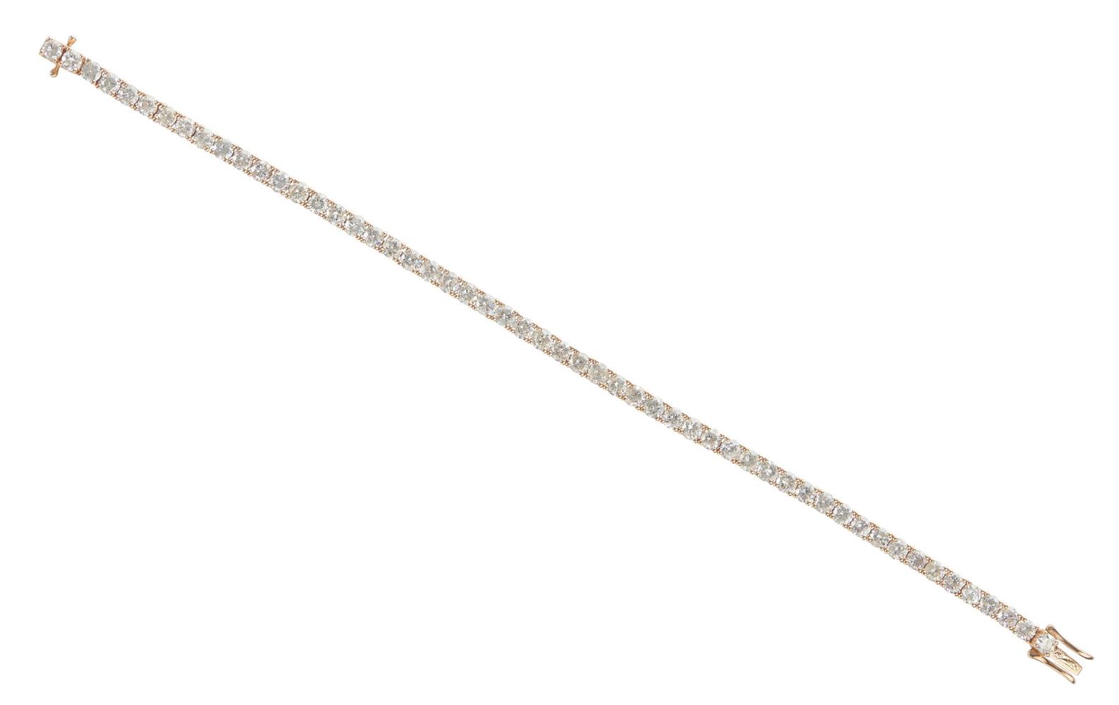 A DIAMOND LINE BRACELET IN 18CT WHITE GOLD, COMPRISING SIXTY FOUR ROUND BRILLIANT CUT DIAMONDS TOTALLING 5.34CTS, TOTAL LENGTH 180MM
