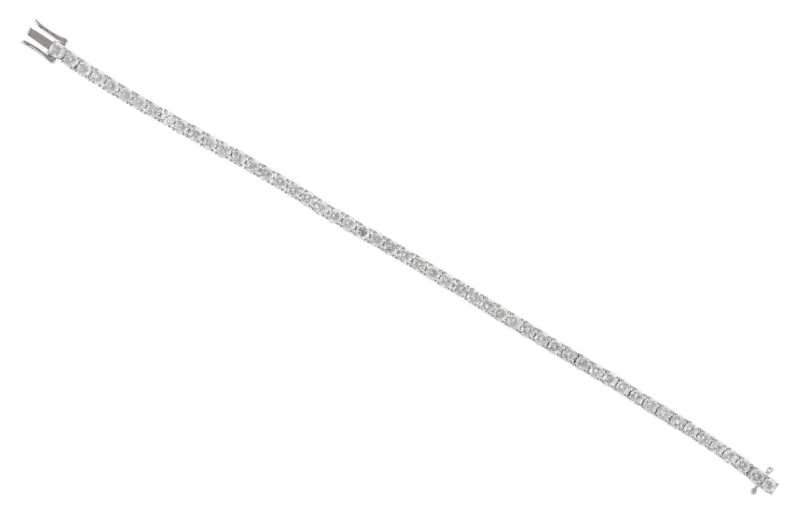 A DIAMOND LINE BRACELET IN 18CT WHITE GOLD COMPRISING FORTY-FIVE ROUND BRILLIANT CUT DIAMONDS TOTALLING 8.24CTS, LENGTH 165MM, 16.8GMS