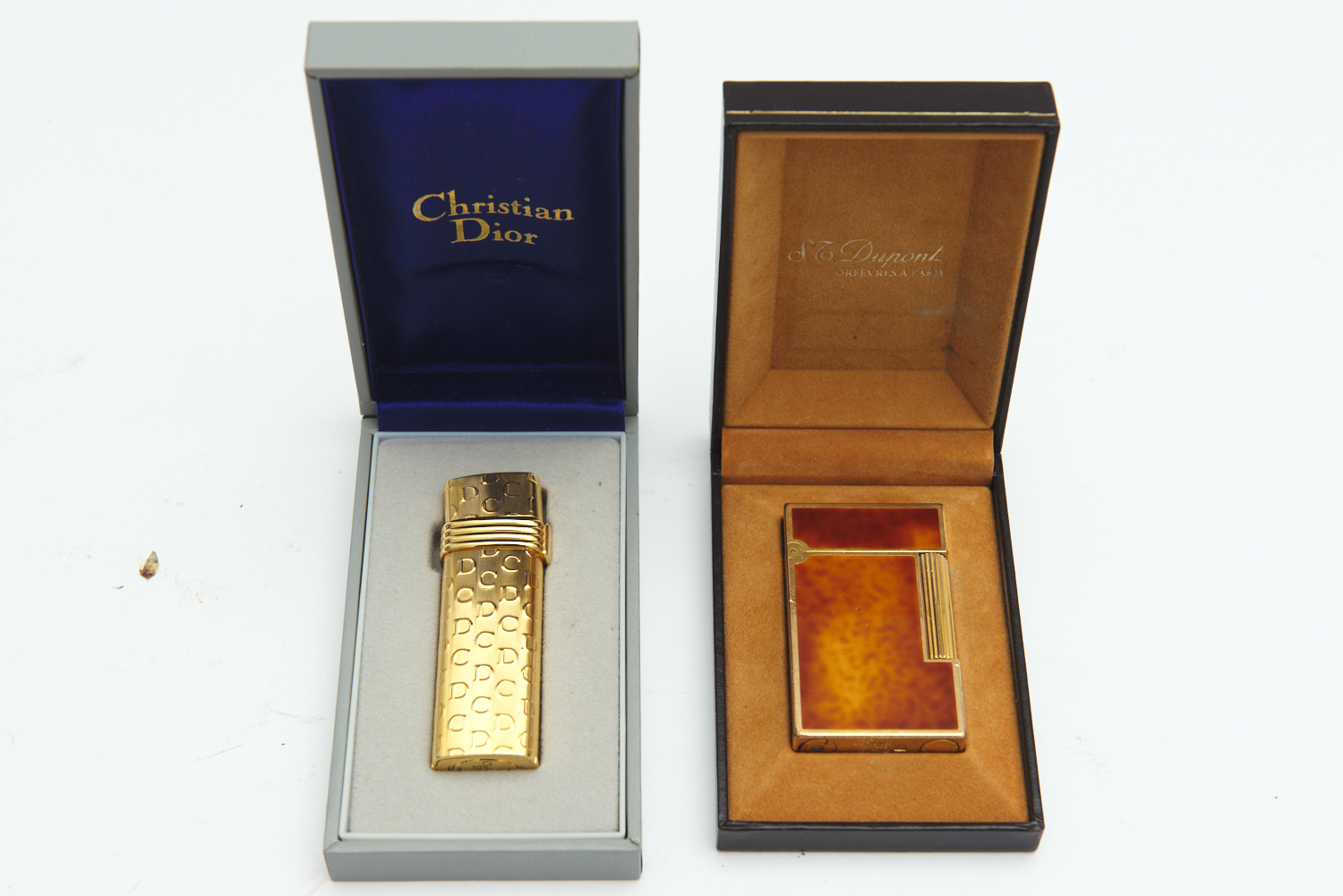 A BOXED CHRISTIAN DIOR AND DUPONT LIGHTER, LEONARD JOEL DELIVERY SIZE: SMALL