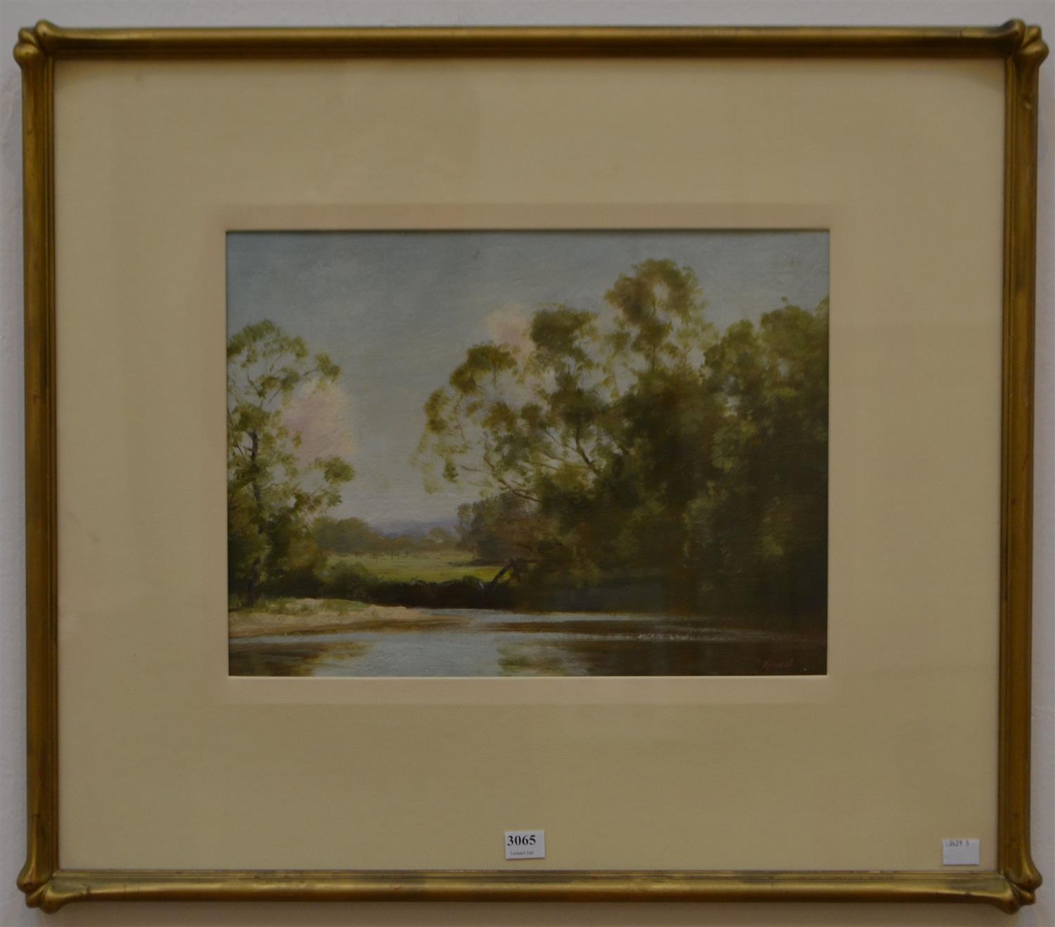 CARL HAMPEL, LANDSCAPE, RIVER SCENE, OIL ON CARD, 28 X 38CM FRAME SIZE: 55.5 X 54CM, CONDITION: WORK IN VERY GOOD CONDITION, LEONARD JOEL DELIVERY SIZE: MEDIUM