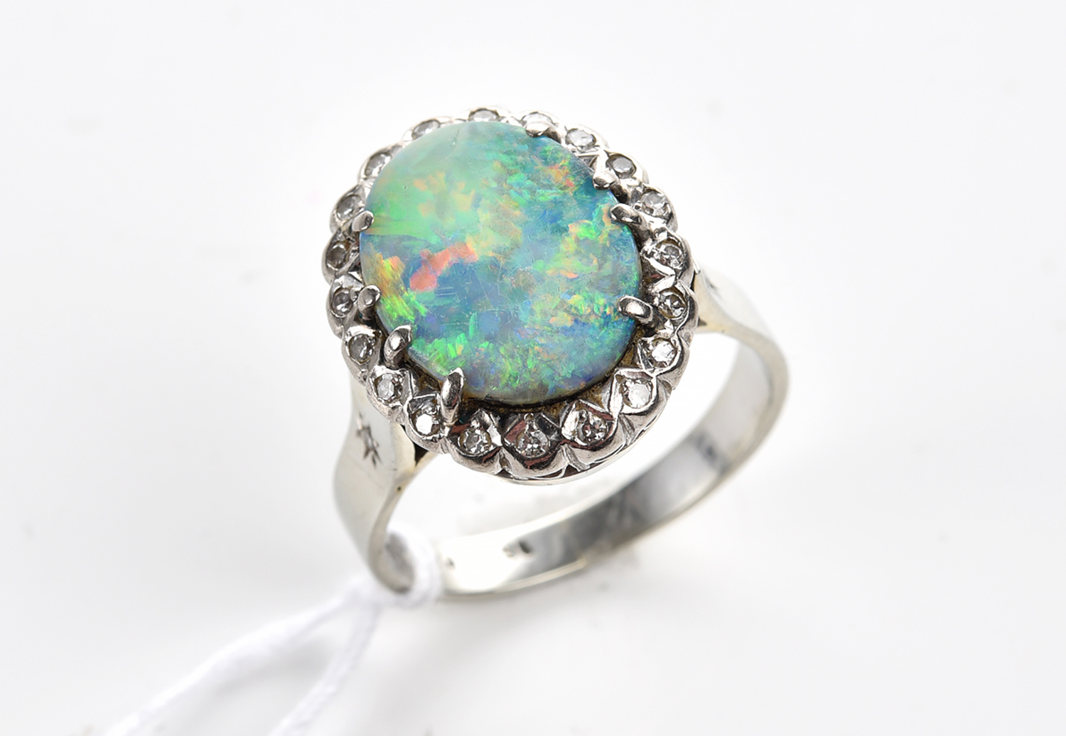 The surface of the opal presents visible scratches, however no visible chips or crazing.