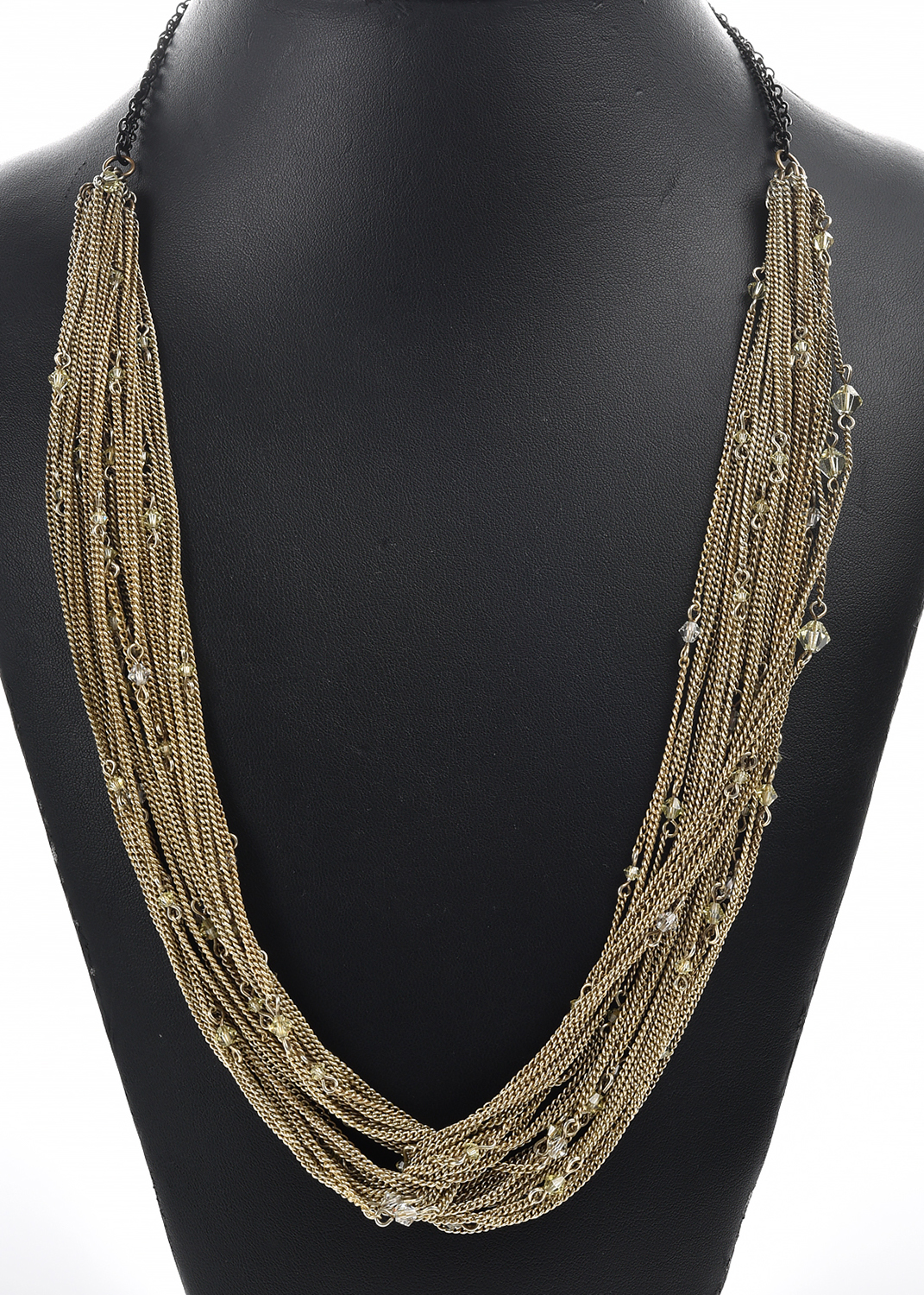 A MULTI-STRAND 22CT GOLD PLATED NECKLACE SET WITH SWAROVSKI CRYSTALS, ADJUSTABLE LENGTH