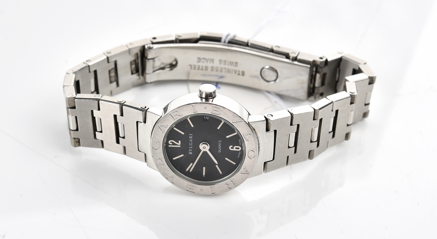 A WRISTWATCH BRANDED BVLGARI, ROUND BLACK DIAL, QUARTZ MOVEMENT, IN STAINLESS STEEL, DIAMETER 2.3CM