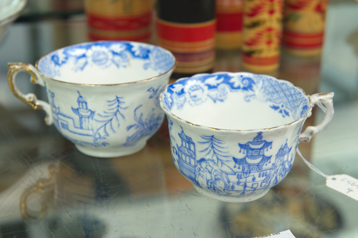 TWO TEACUPS IN 'PEKIN' PATTERN FOR THOMAS WEBB AND SONS MELBOURNE