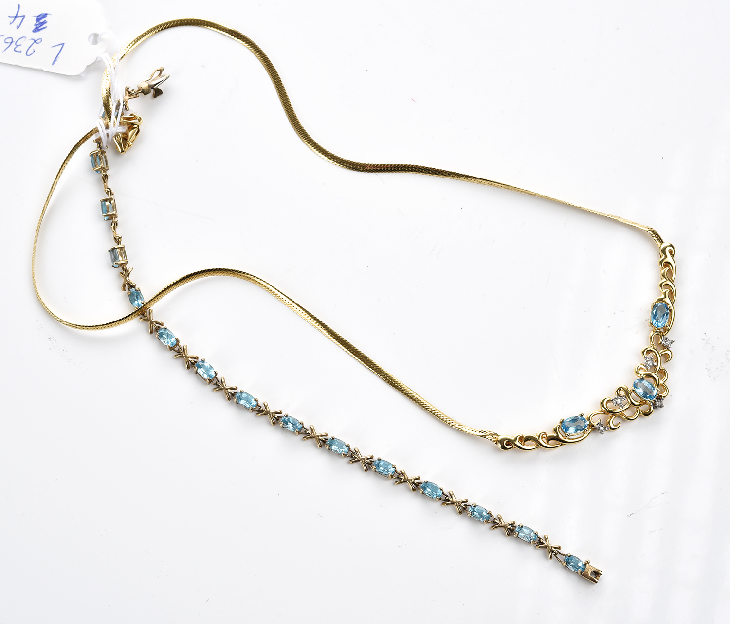 A TOPAZ BRACELET IN 9CT GOLD TOGETHER WITH A PASTE SET NECKLACE IN 9CT GOLD. TOTAL WEIGHT 11.7GMS