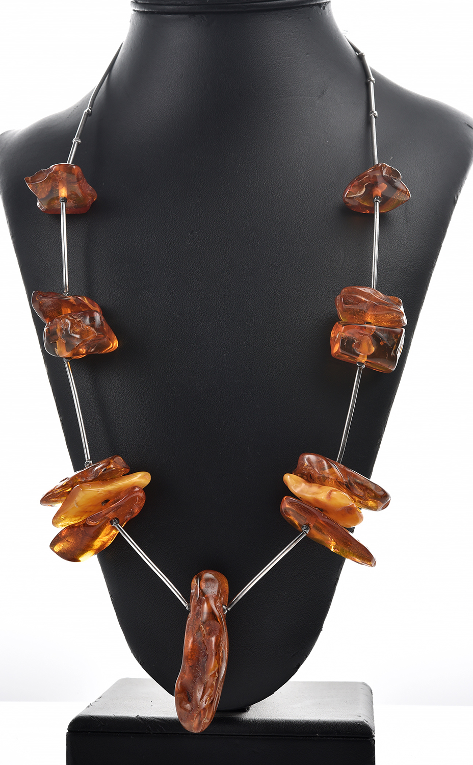 AN AMBER HANDCRAFTED NECKLACE IN SILVER