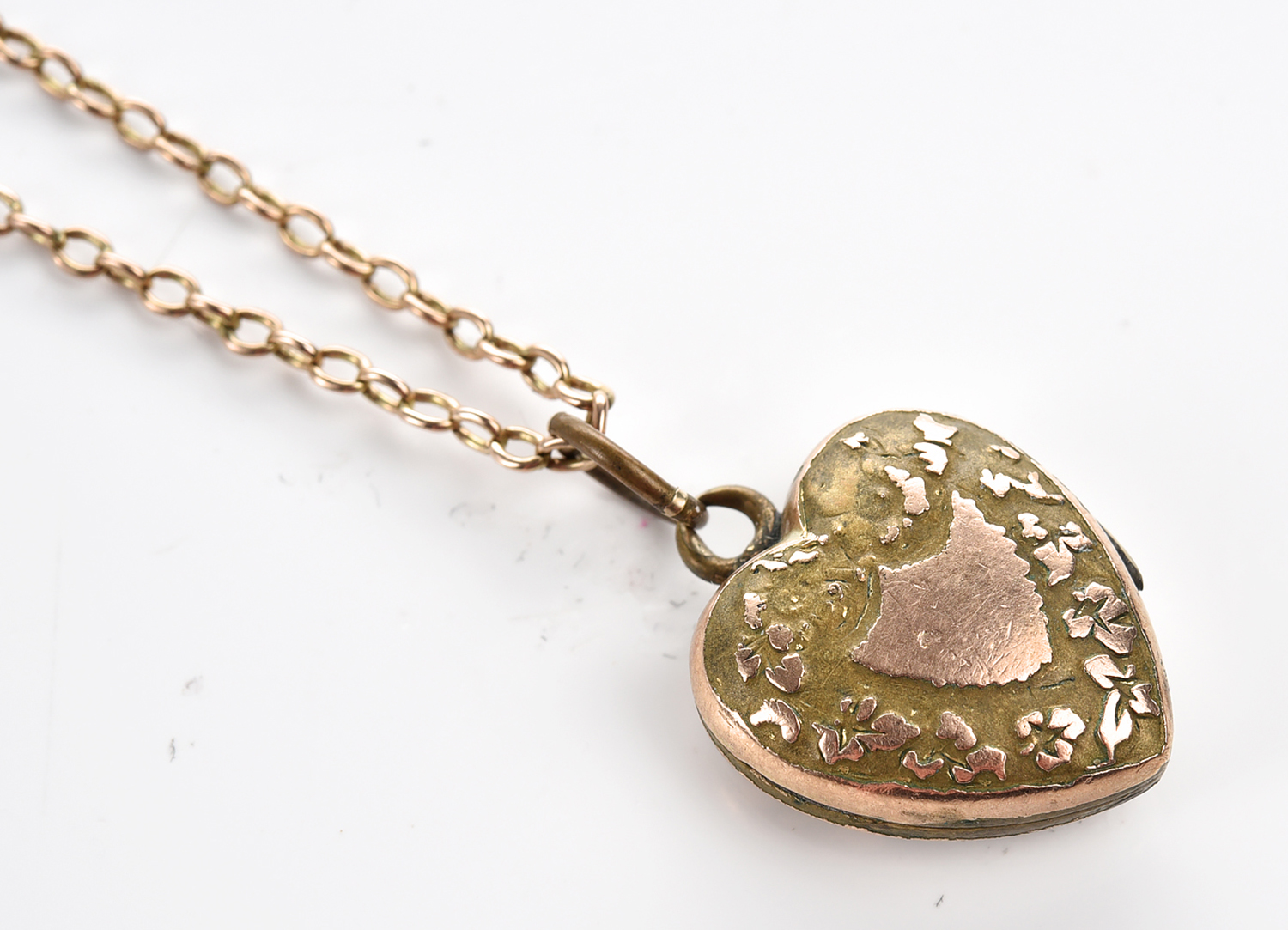 A GOLD LINED HEART LOCKET (A/F) TO A 9CT ROSE GOLD CHAIN, 4.0GMS