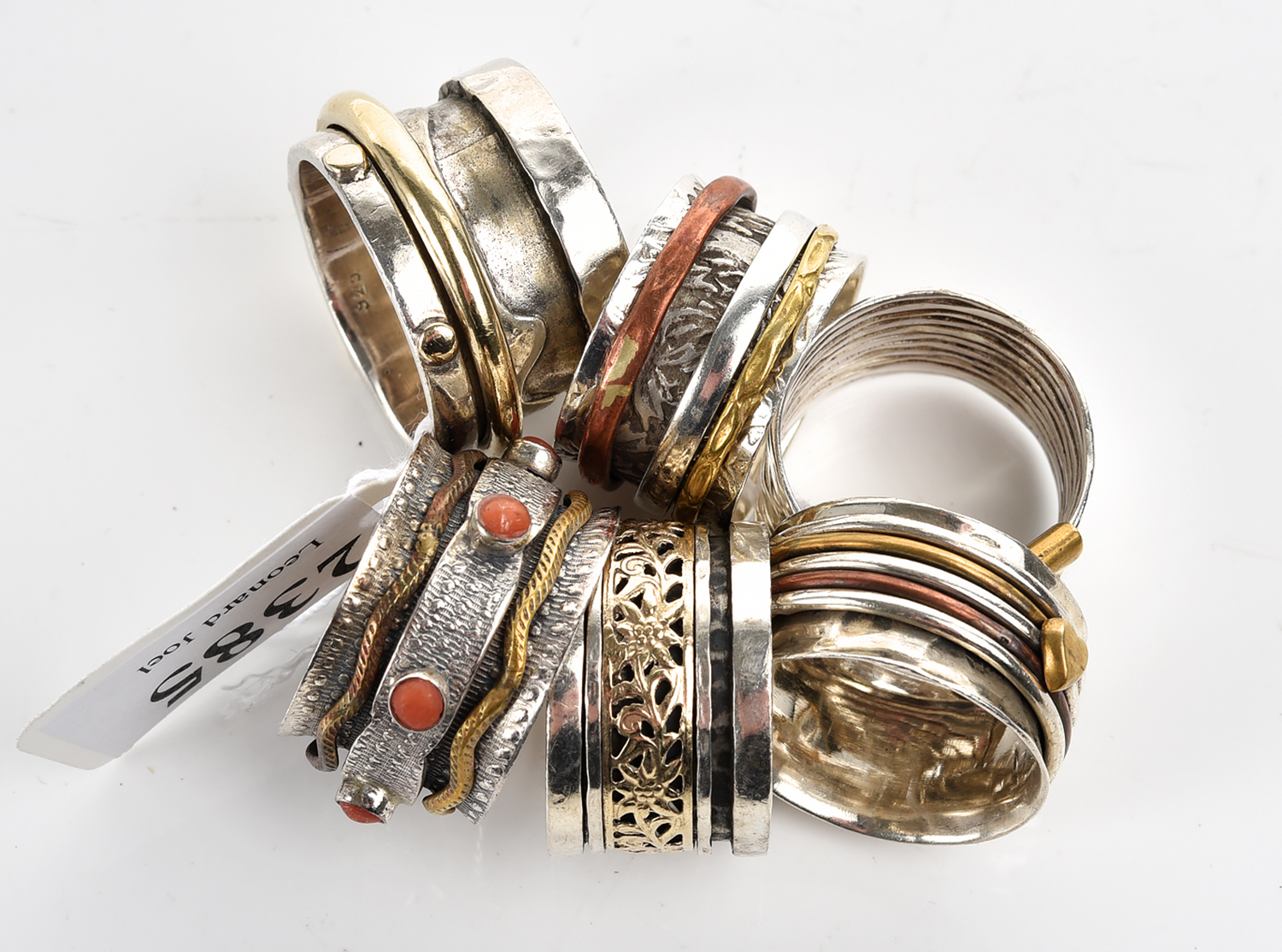 A COLLECTION OF SIX STERLING SILVER STONE SET RINGS