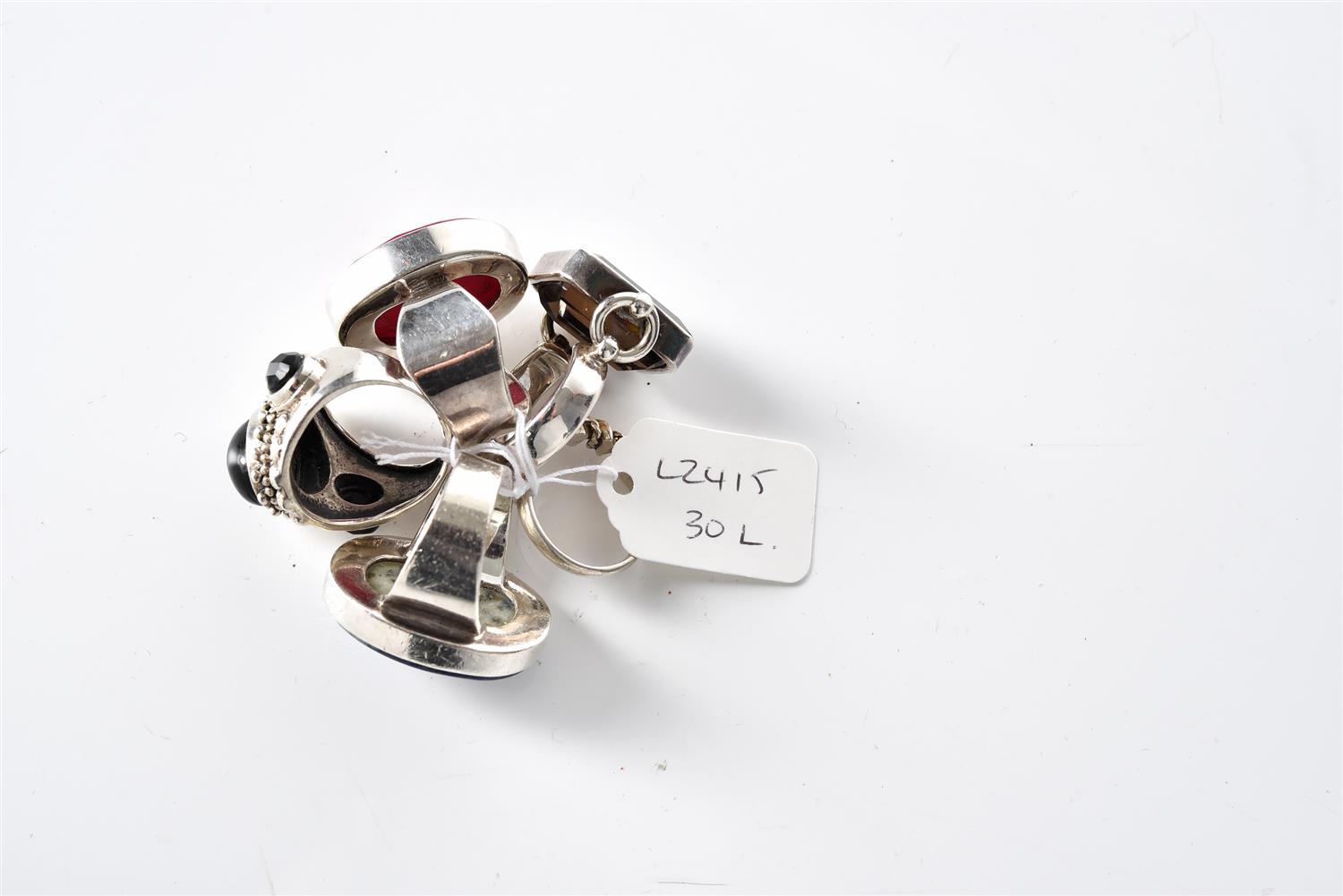 A COLLECTION OF FIVE STERLING SILVER STONE SET RINGS, SIZE N-P