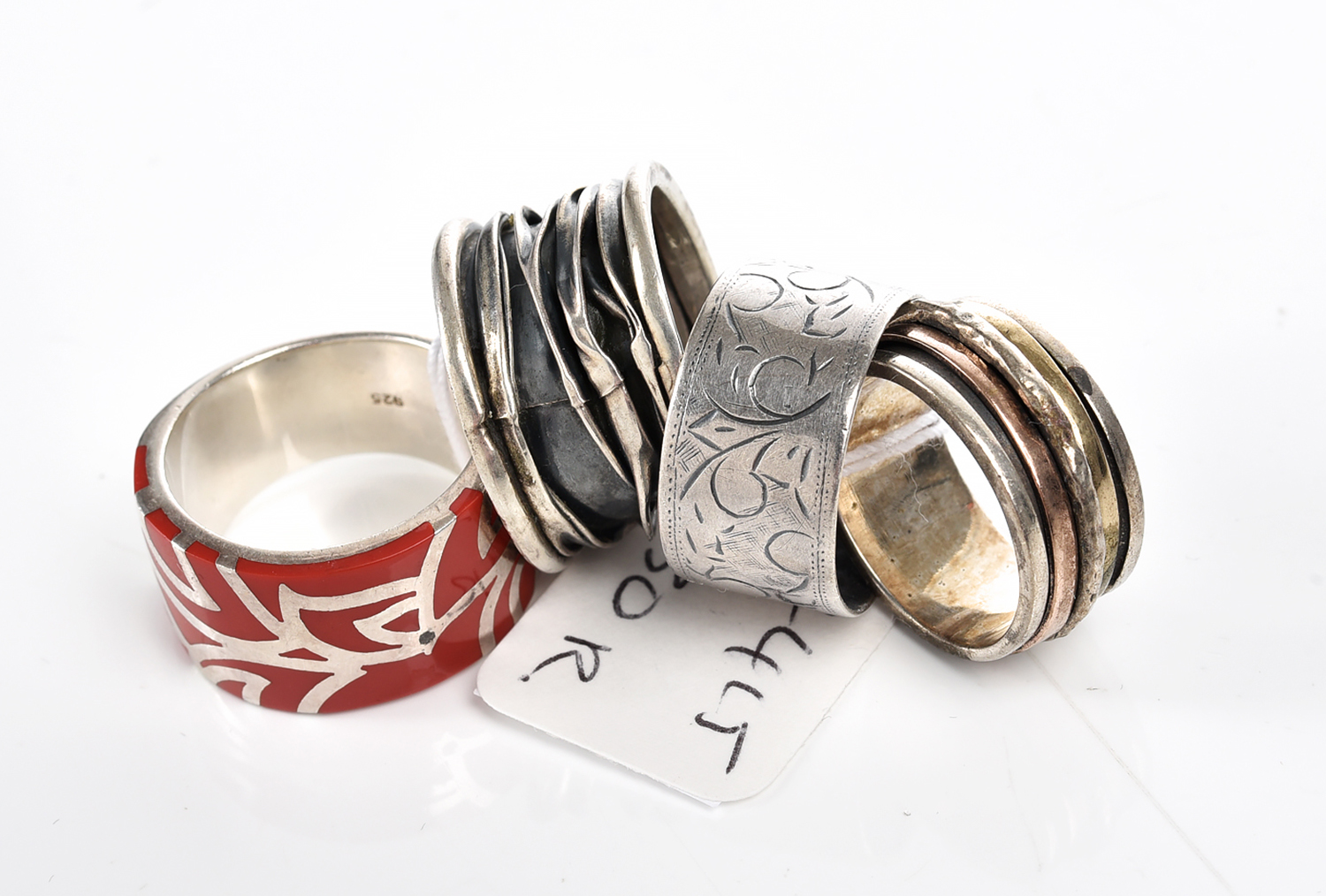 A COLLECTION OF FOUR STERLING SILVER STONE SET RINGS, SIZES Q, K, O, K.