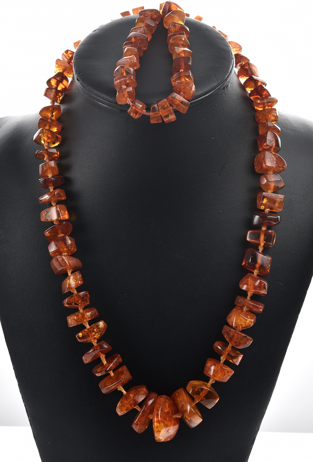 AN AMBER NECKLACE AND BRACELET, LENGTH 57.5CM