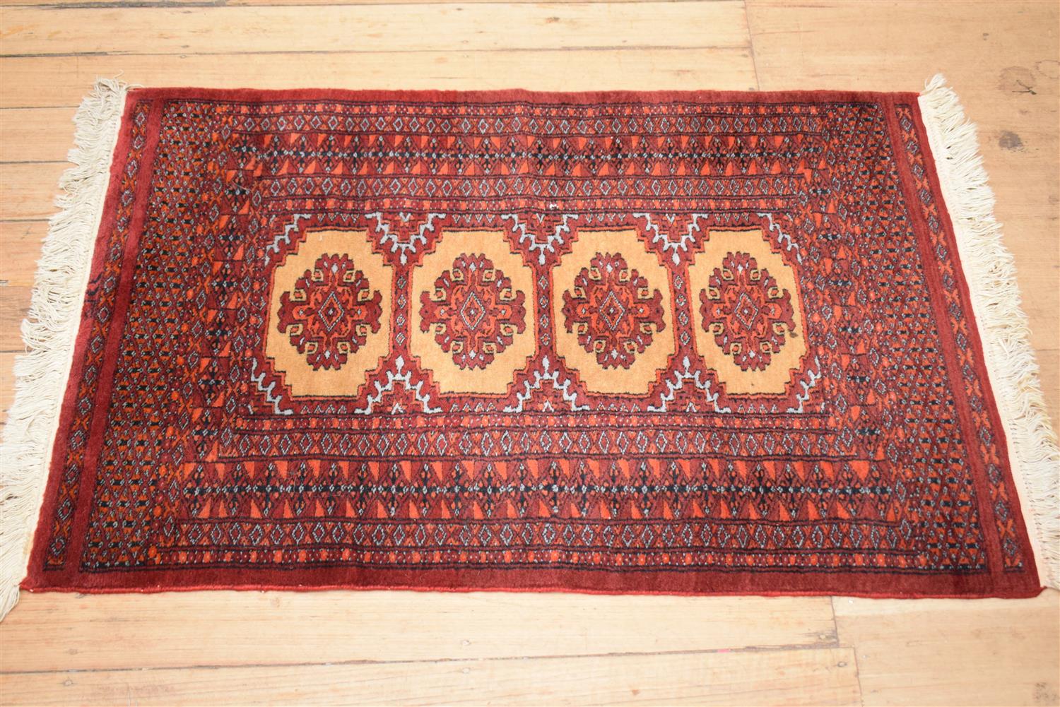 A SMALL WOOLLEN RUG (136 X 80 CM)