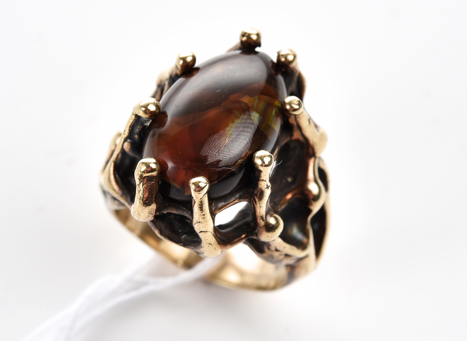 AN OPAL RING IN 9CT GOLD, SIZE N-O, 15.2GMS