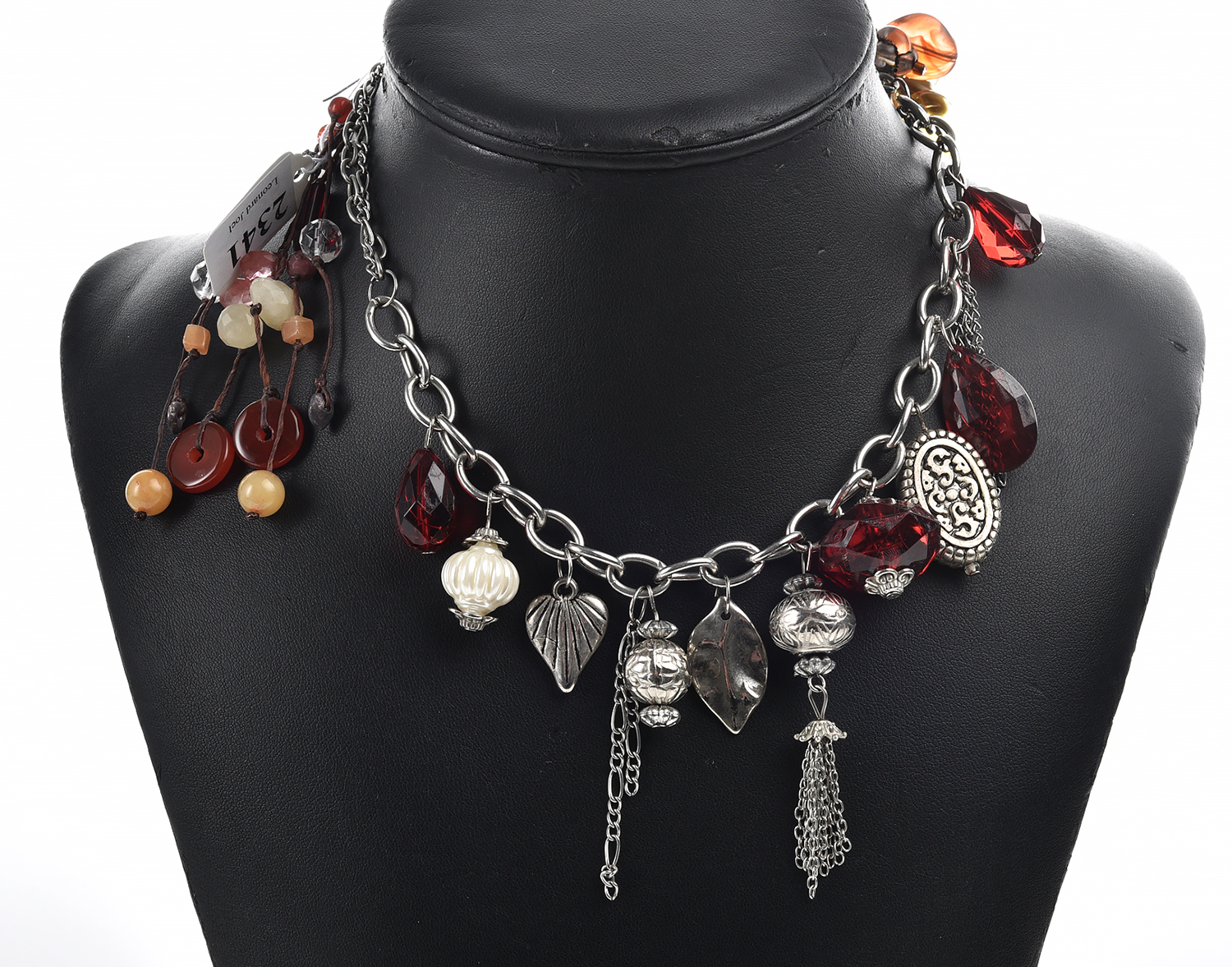 A PAIR OF LONG GEM SET DROP EARRINGS TOGETHER WITH TWO CHARM BRACELETS