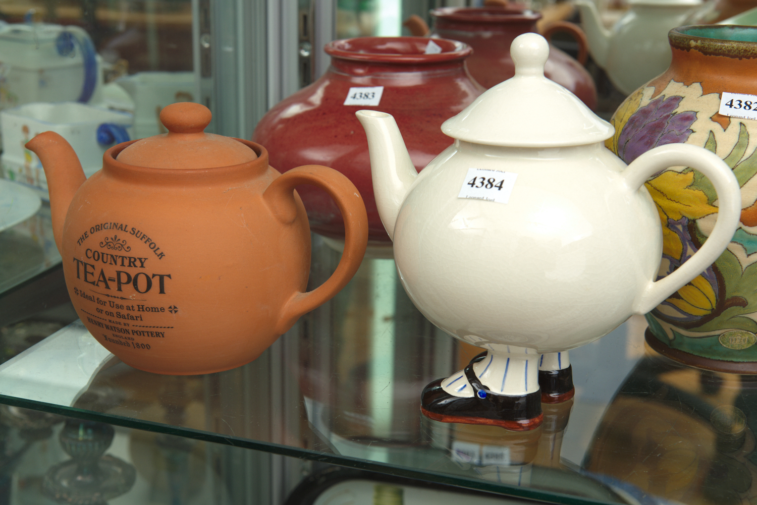 A NOVELTY TEAPOT AND A TERRACOTTA TEAPOT