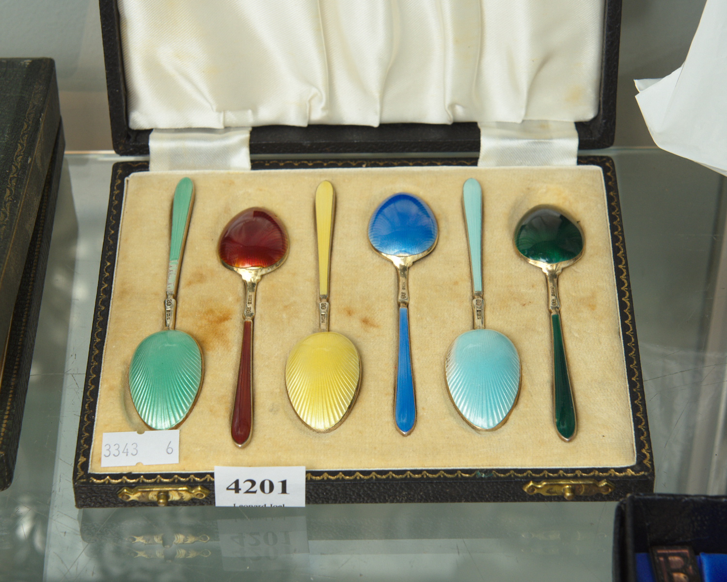 SET OF STERLING SILVER AND ENAMEL TEASPOONS