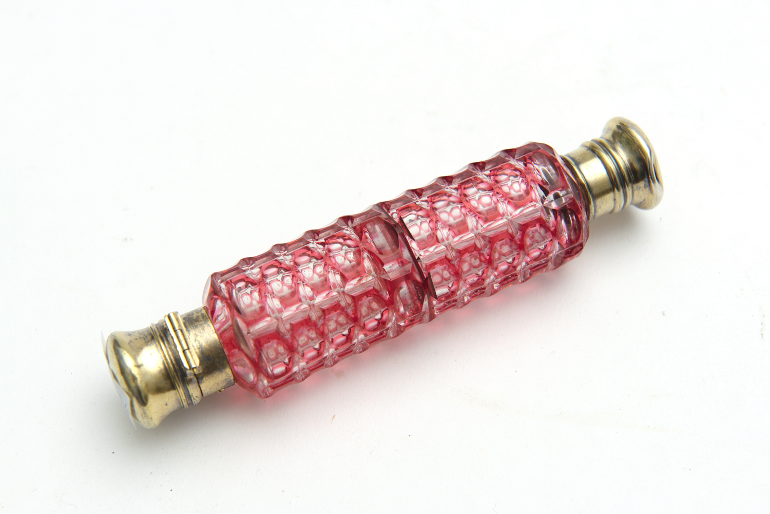 A VICTORIAN RUBY GLASS TEAR / SCENT BOTTLE