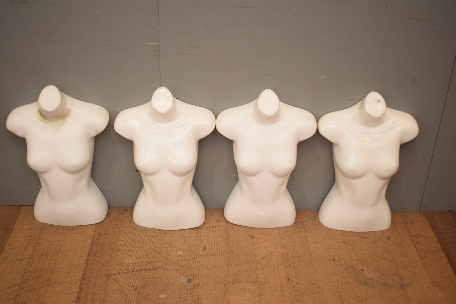 A COLLECTION OF FOUR MANNEQUIN BUSTS (56H X 38W X 20D CM)
