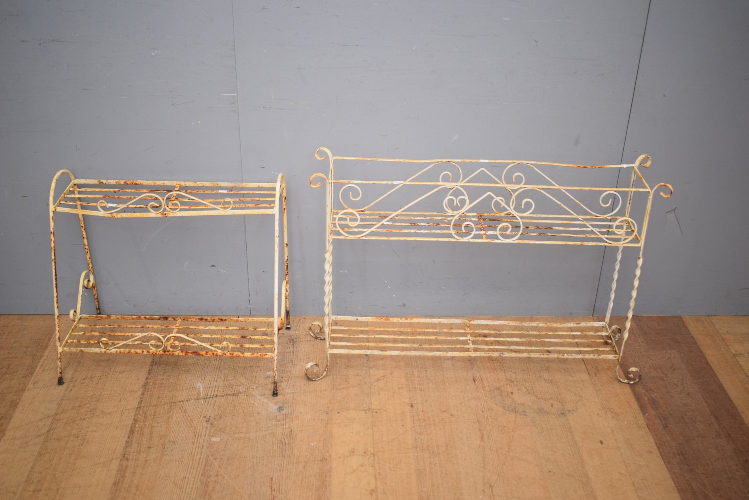 TWO VINTAGE IRON GARDEN RACKS (A/F) (LARGER 61H X 92W X 21D CM)