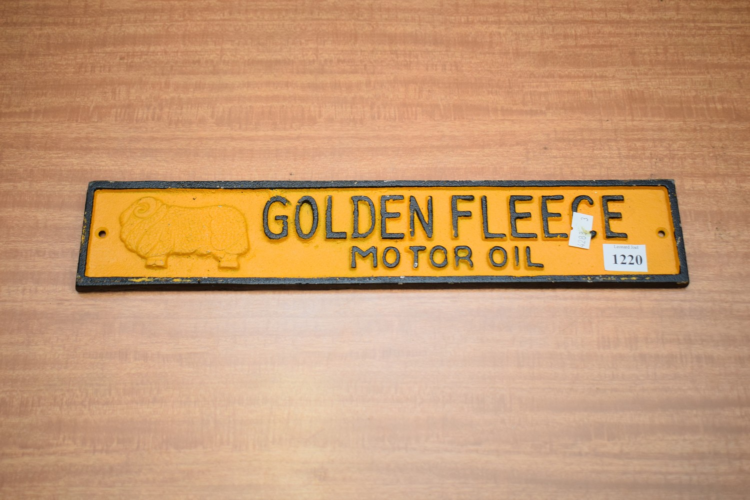 A GOLDEN FLEECE MOTOR OIL SIGN (35W x 7D CM)