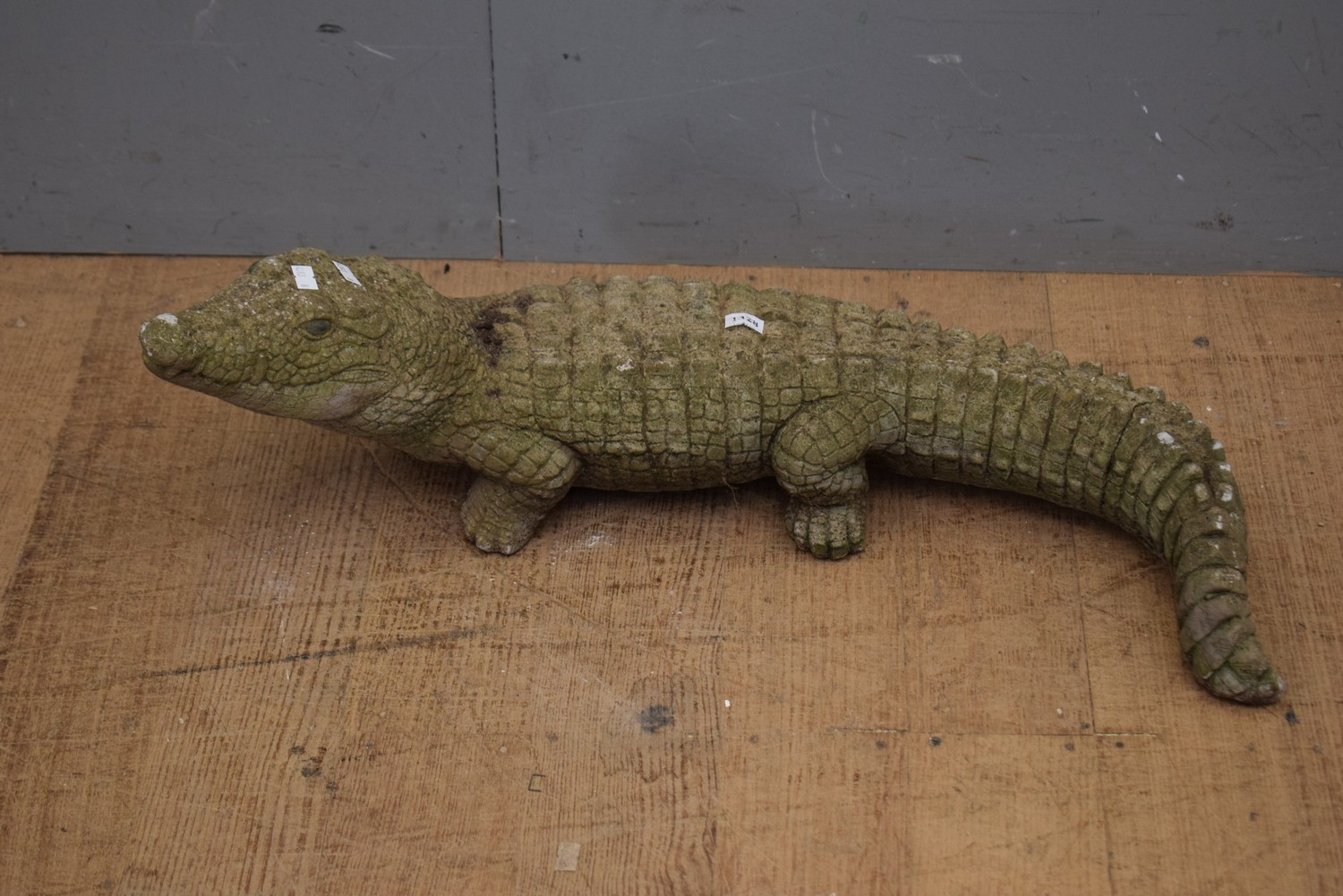 A CONCRETE GARDEN CROCODILE (22H X 69W CM)
