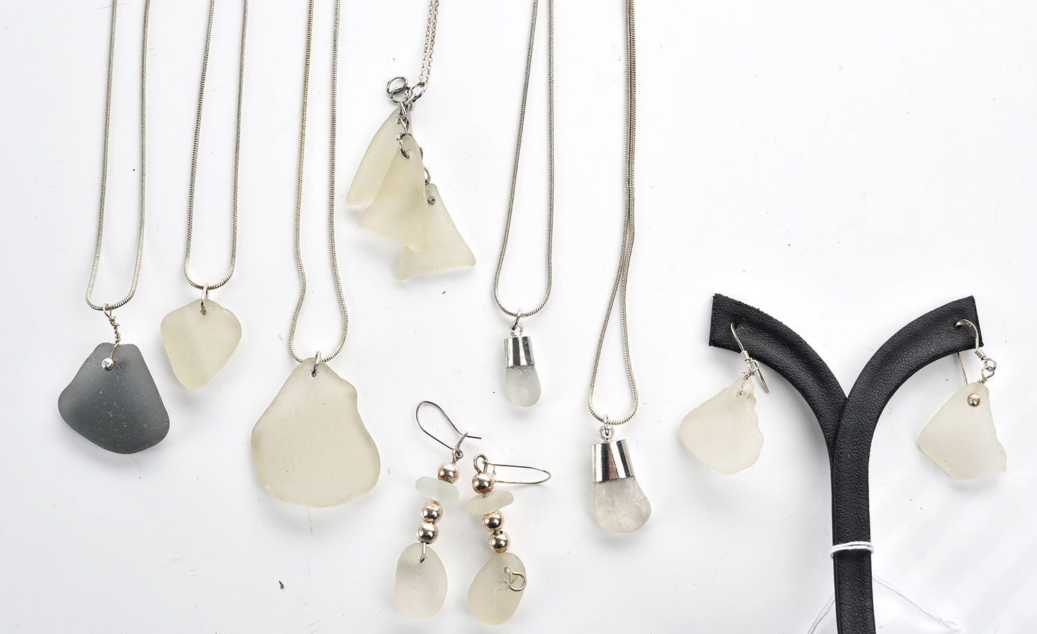 A COLLECTION OF WELSH SEA GLASS JEWELLERY, COMPRISING EARRINGS AND PENDANTS