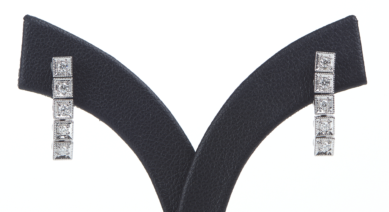 A PAIR OF DIAMOND DROP EARRINGS IN 18CT WHITE GOLD, TOTAL DIAMONDS WEIGHT 0.18CT, TO POST AND BUTTERFLY FITTINGS, LENGTH 17MM, 2.9GMS