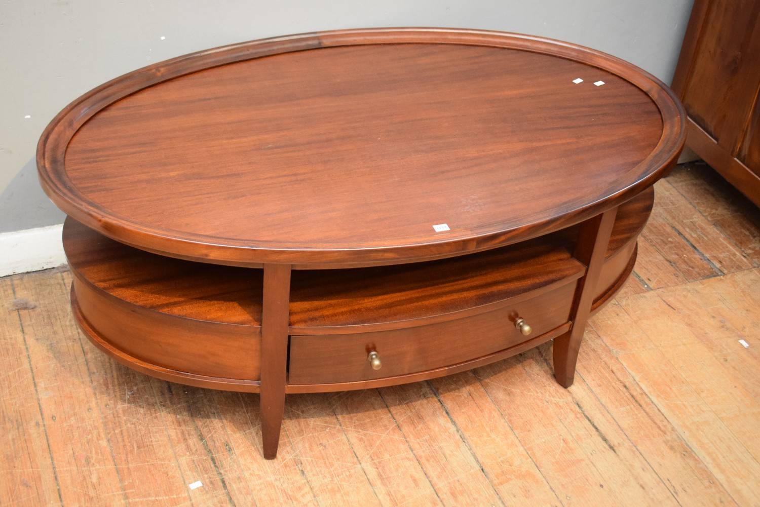 A REGENCY STYLE OVAL MAHOGANY COFFEE TABLE (51H X 130W X 80D CM)