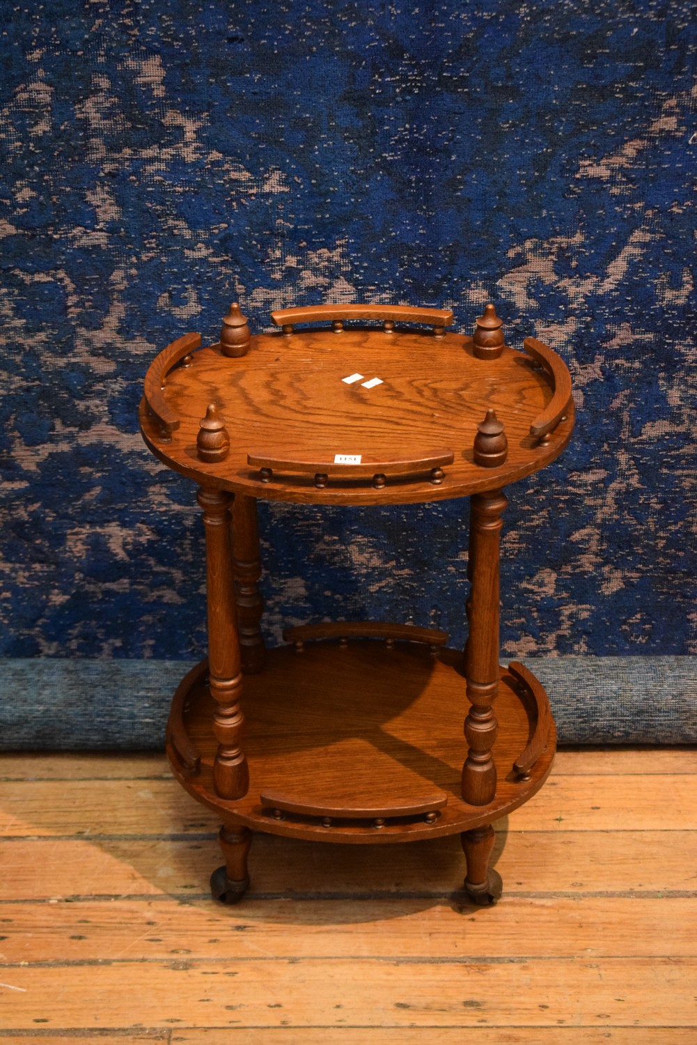 A TIMBER TWO TIER AUTO TROLLEY (68H X 46W X 37D CM)