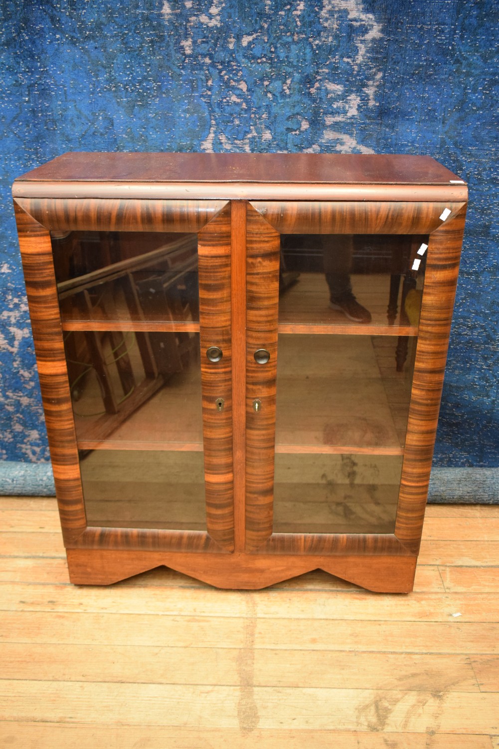 AN ART DECO TWO DOOR GLASS FRONTED BOOKCASE (107H X 91W X 43D CM)
