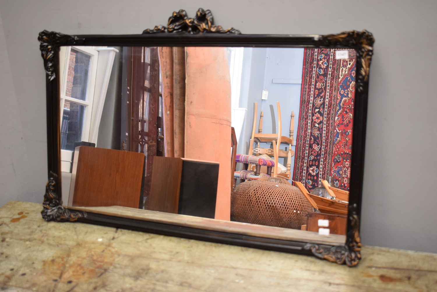 A DECORATIVE TIMBER MIRROR (57H X 87W CM)