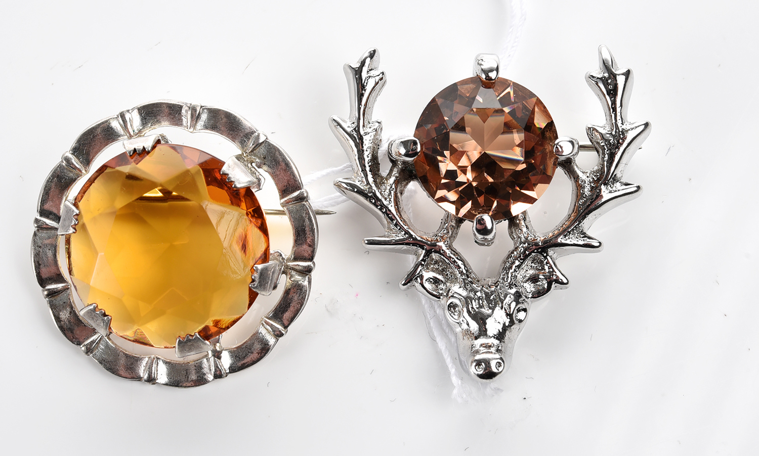 TWO SCOTTISH CITRINE SET BROOCHES, ONE IN STERLING SILVER STAMPED W.B.S