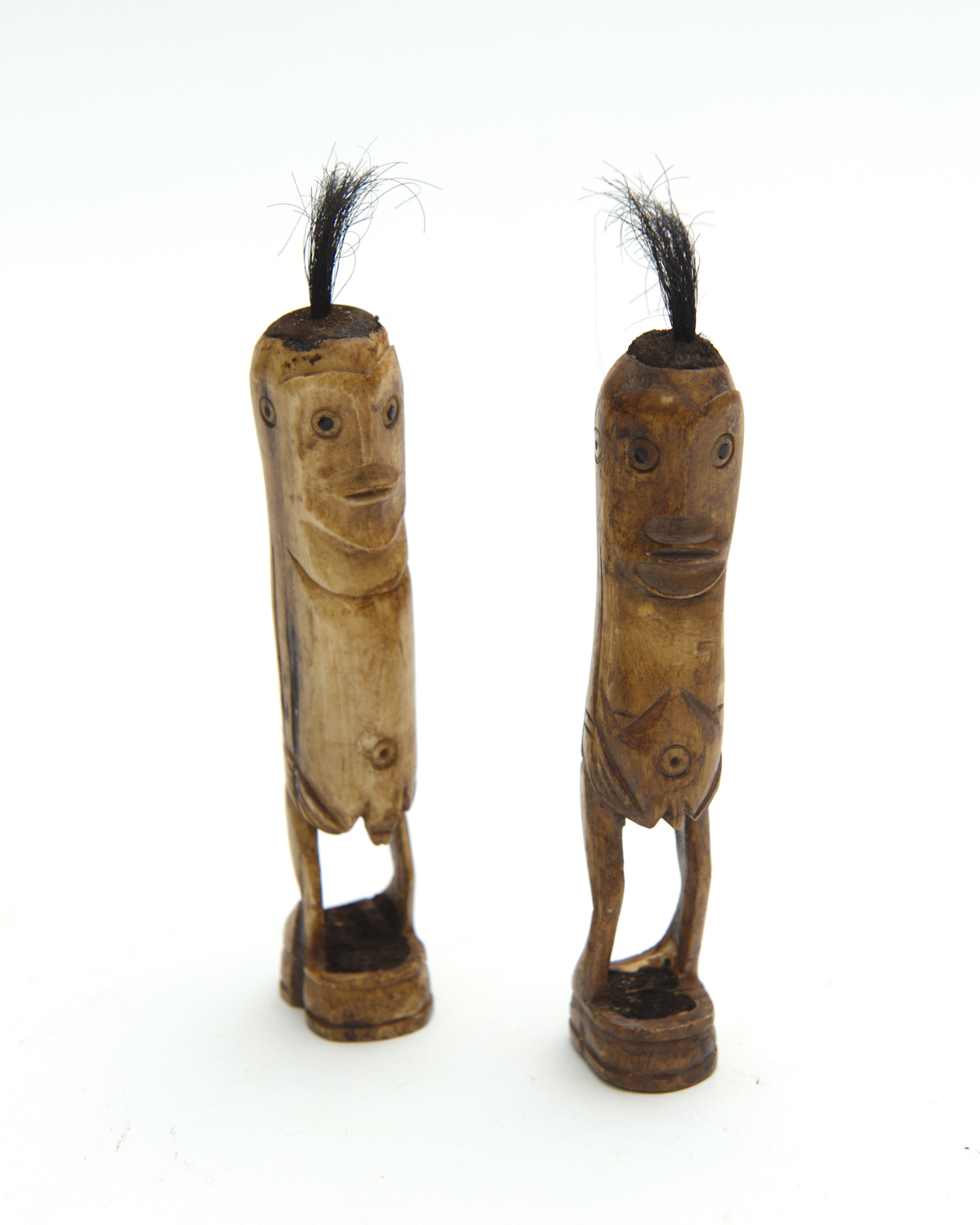 A PAIR OF BONE FERTILITY DOLLS FROM TIMOR H.13CM EACH (SMALL DELIVERY)
