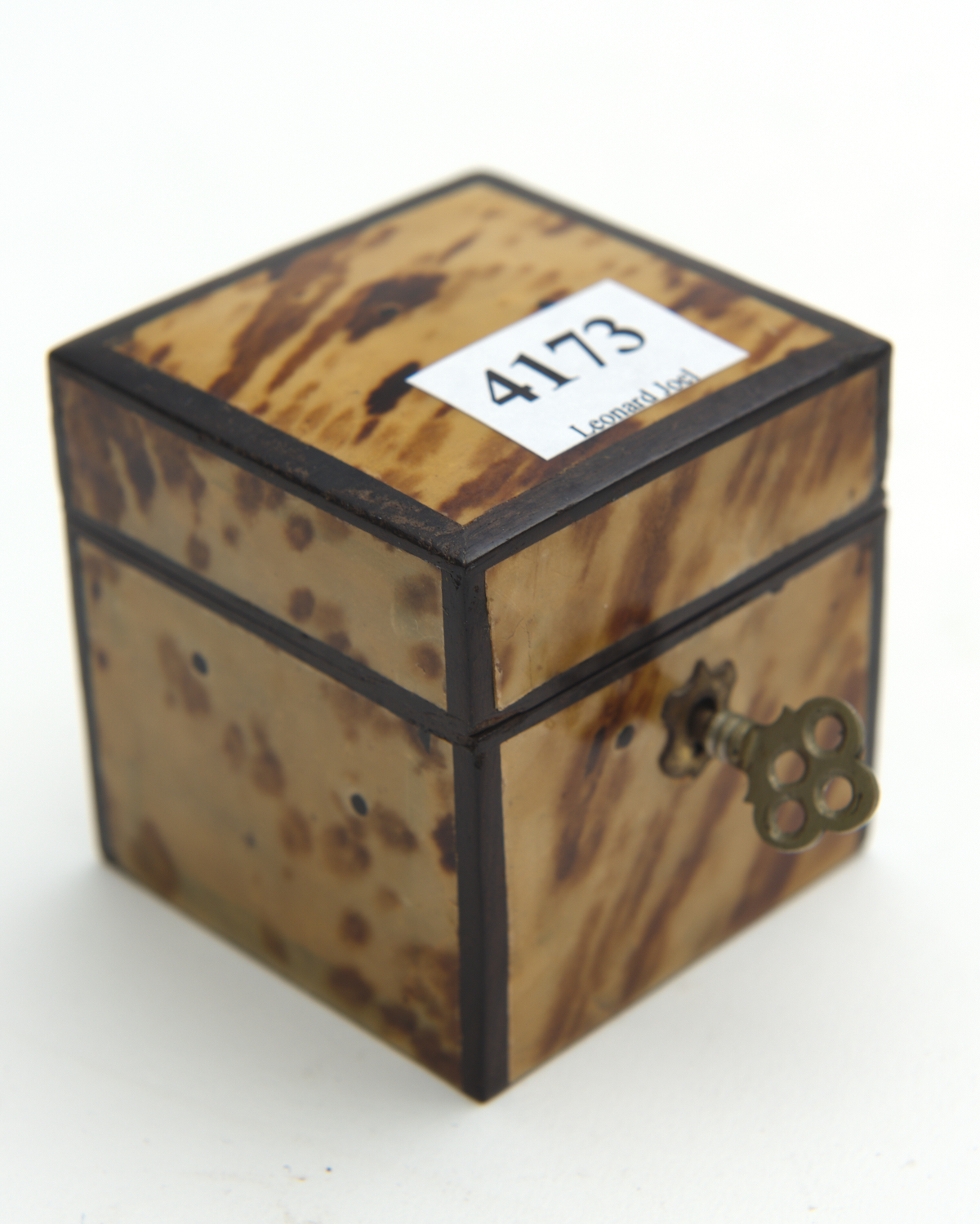 A VINTAGE BOX WITH TORTOISESHELL STYLE OVERLAY (WITH KEY)