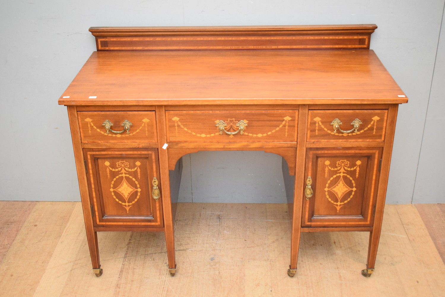 A SHERATON REVIVAL WRITING DESK WITH TIMBER INLAY (93H X 121W X 57D CM)