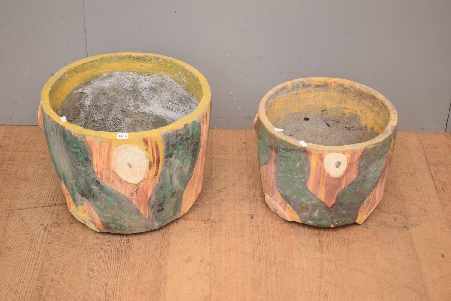 TWO MID-CENTURY LOG POTS (LARGER 36H X 44W) (PLEASE NOTE THIS HEAVY ITEM MUST BE REMOVED BY CLIENTS OR CARRIERS AT THE CUSTOMERS EXPENSE. LEONARD JOEL STAFF CANNOT ASSIST CARRYING THIS ITEM)