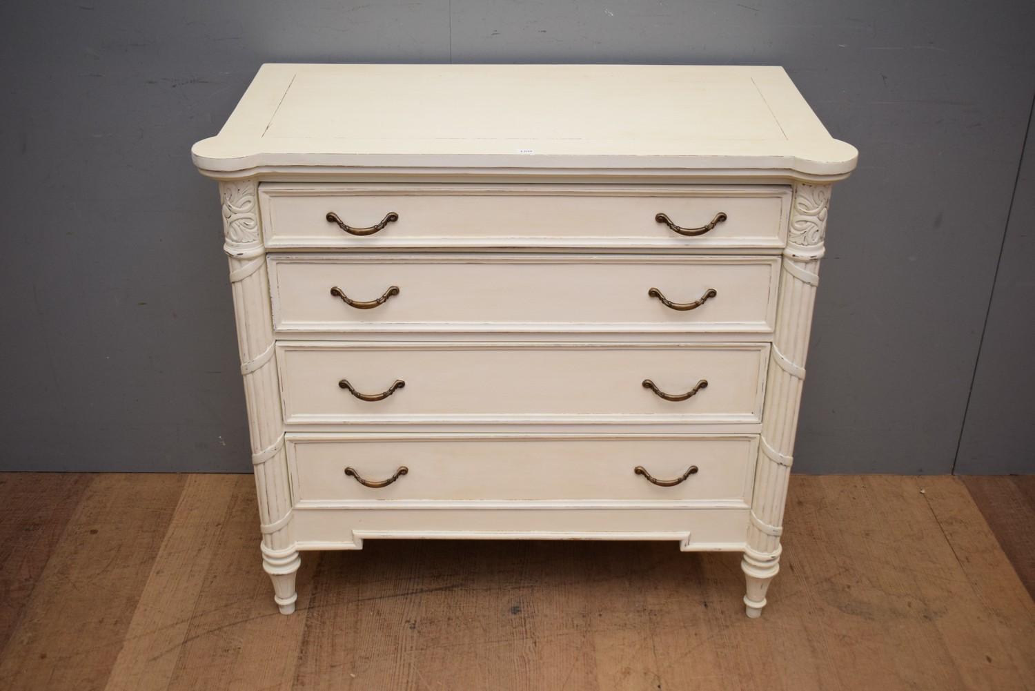 A FRENCH STYLE WHITE PAINTED FOUR DRAWER CHEST (92H x 101W x 50D CM) (LARGE ITEM)