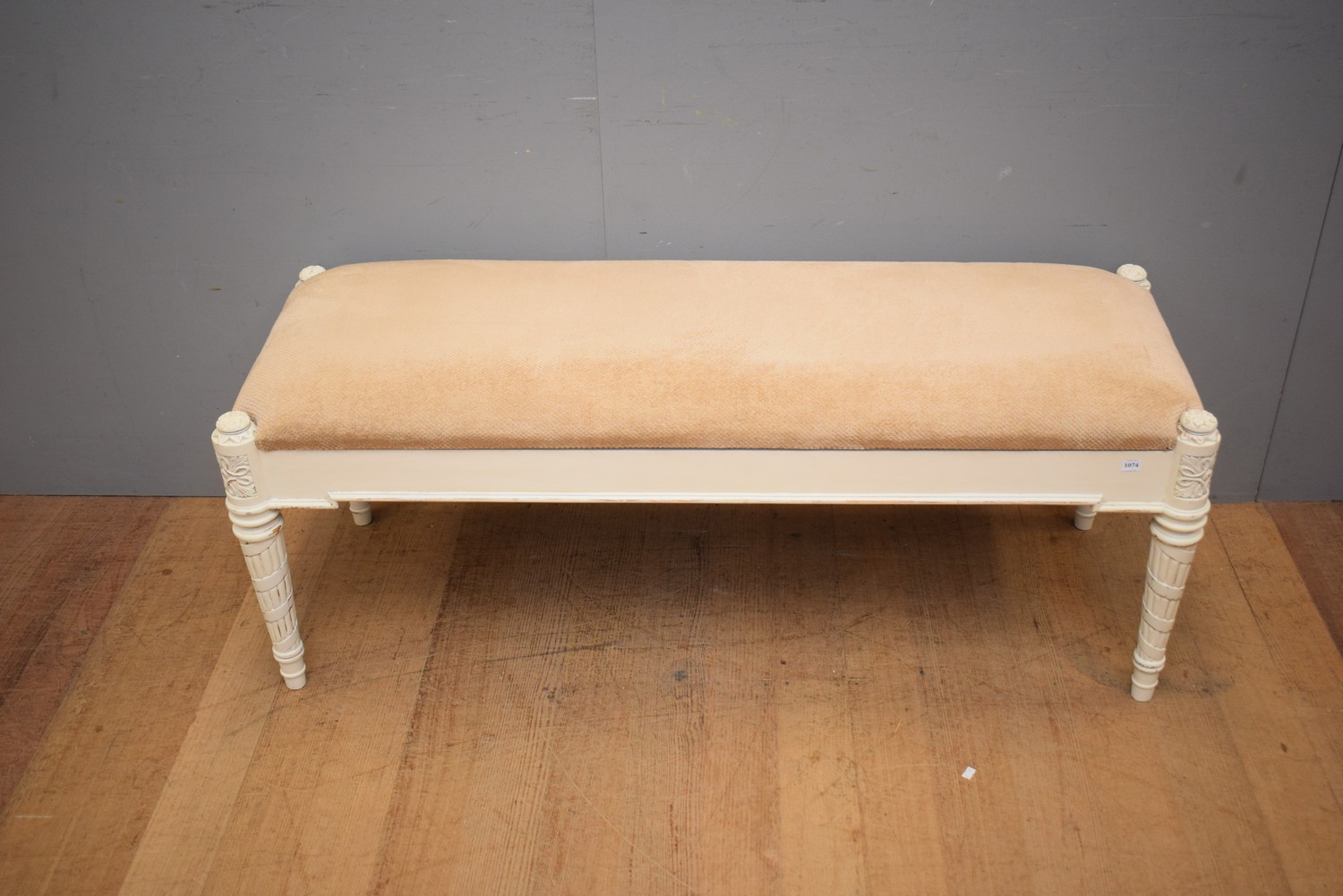 A FRENCH STYLE UPHOLSTERED OTTOMAN (53H X 35W X 50D CM)