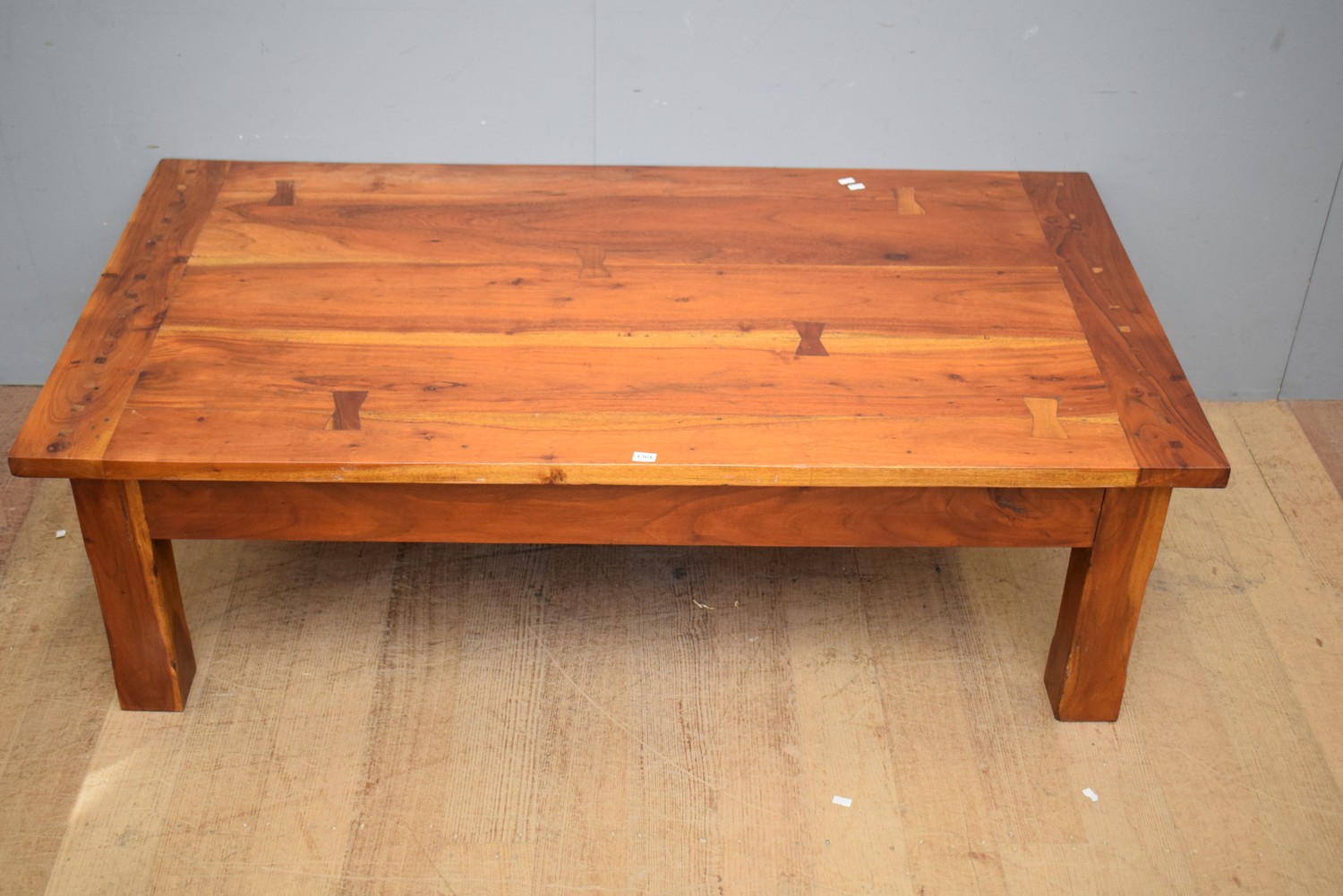 A TIMBER COFFEE TABLE (40H X 135W X 75D CM)