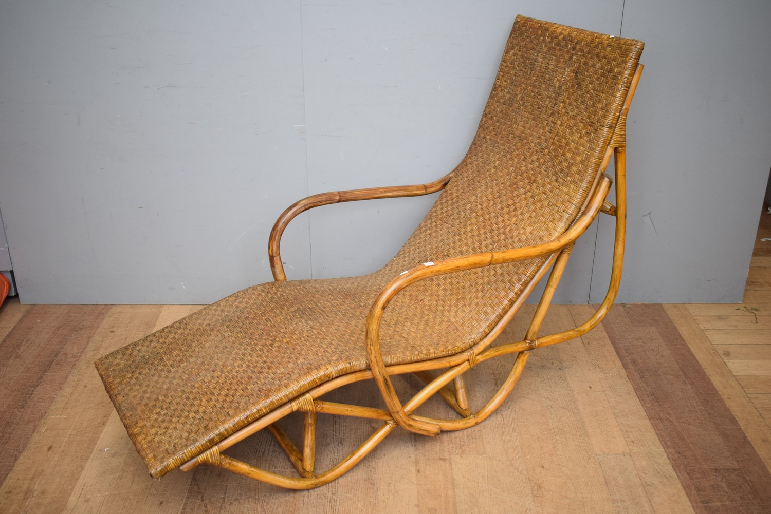 A BAMBOO OUTDOOR SUN LOUNGE (114H X 157W X 64D CM)