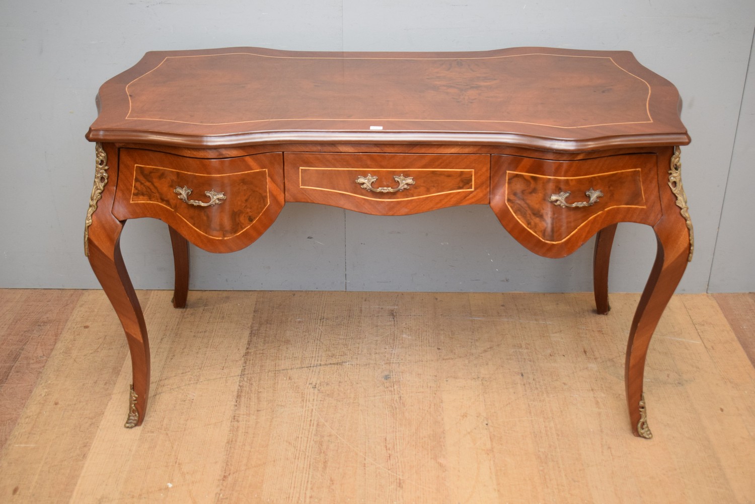 A LOUIS XV STYLE BUREAU PLAT WITH ORMOLU MOULDING (80H X 140W X 68D CM)