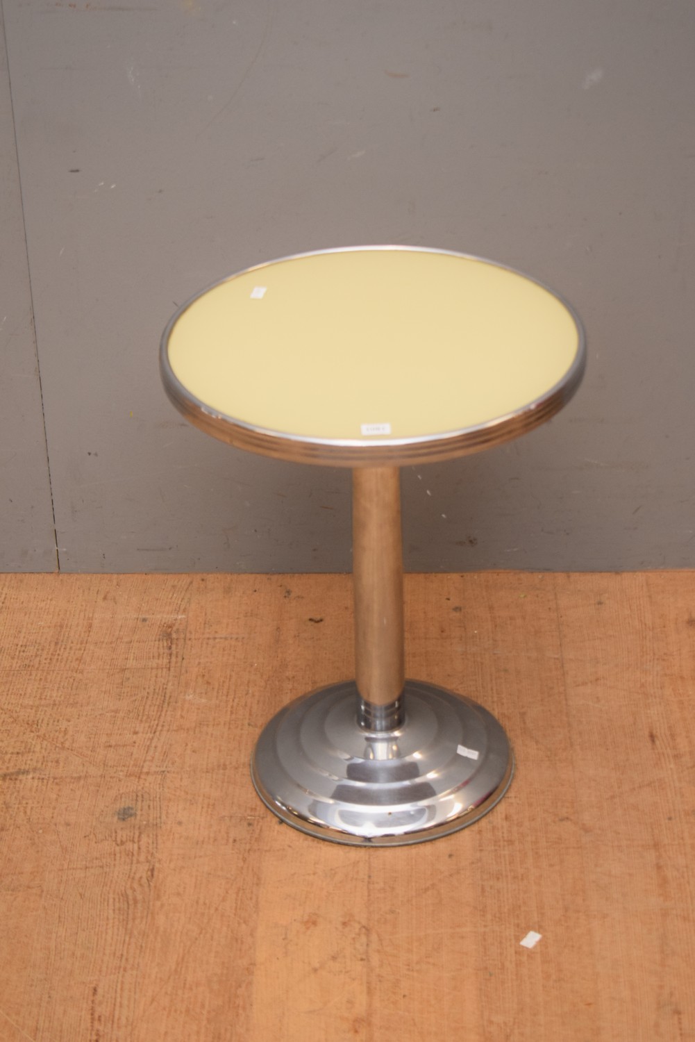 A ROUND ART DECO CHROME SIDE TABLE (51H X 40DIAM CM)