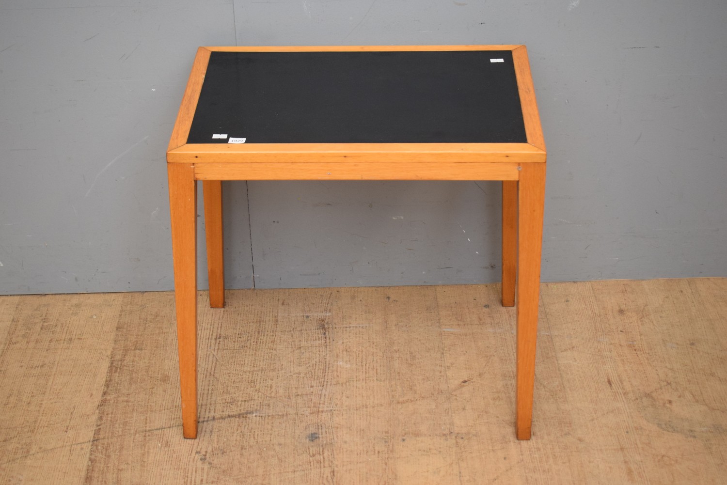 A MID-CENTURY BLONDEWOOD BLACK INSERT SIDE TABLE (58H X 61W X 42D CM)